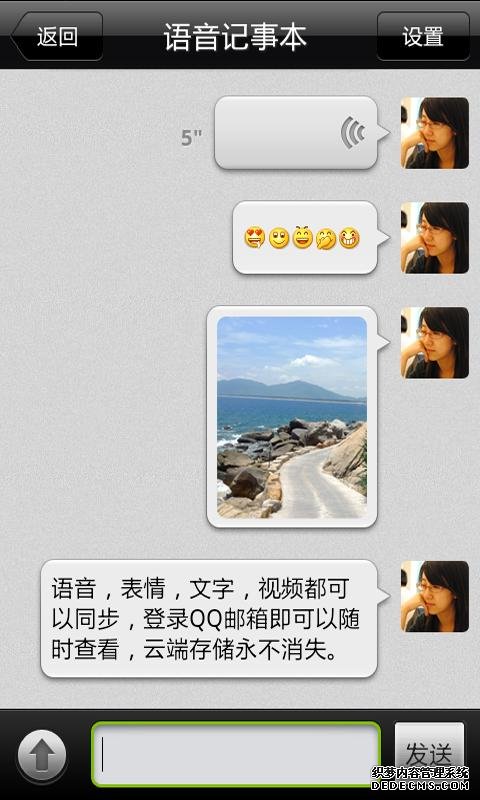 2. 发送多媒体信息,包括语音,图片,视频,表情图标 (需要说一下,那个视频的压缩和传输速度非常快和不占流量,虽然质量不是特别好,但手机屏幕足够用了)
