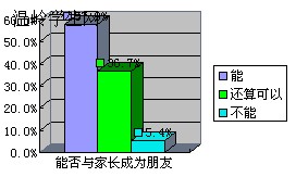 通过这组数据可以看到:绝大部分的学生都能和家长成为好朋友。毕竟家长是除了自己以外最值得信赖的人,学生和家长成为朋友,便于学生与家长交流和沟通,会使家庭教育起到事半功倍的效果。